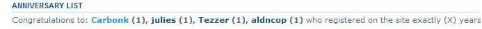 Anniversary List: Check out whose anniversary it is today on the forums. Simply put, shows how many years a member has completed on joining DPForums on a particular day. Since this list isn't shown everyday (just like the birthday list), I'm attaching a screenshot of how it will look like on someone's anniversery.