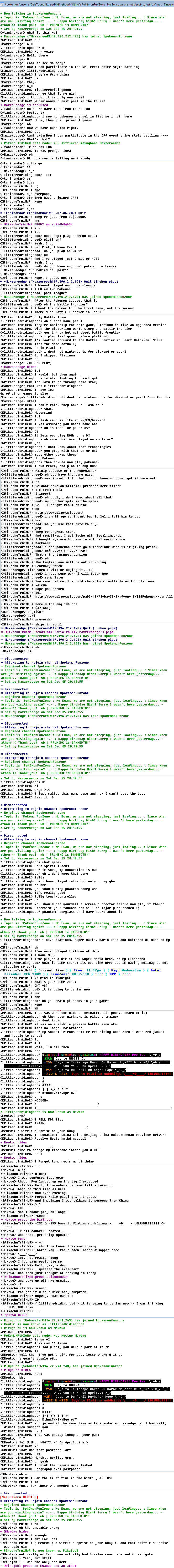 ), at the same time that Maxedge and taninamdar joined the IRC channel. So this confused Petey as to me being a new troll around the server and casually entering #pokemonfunzone. We had a nice talk, I enjoyed being this 12-yr old boy from China, trying to speak slightly in a newbish manner